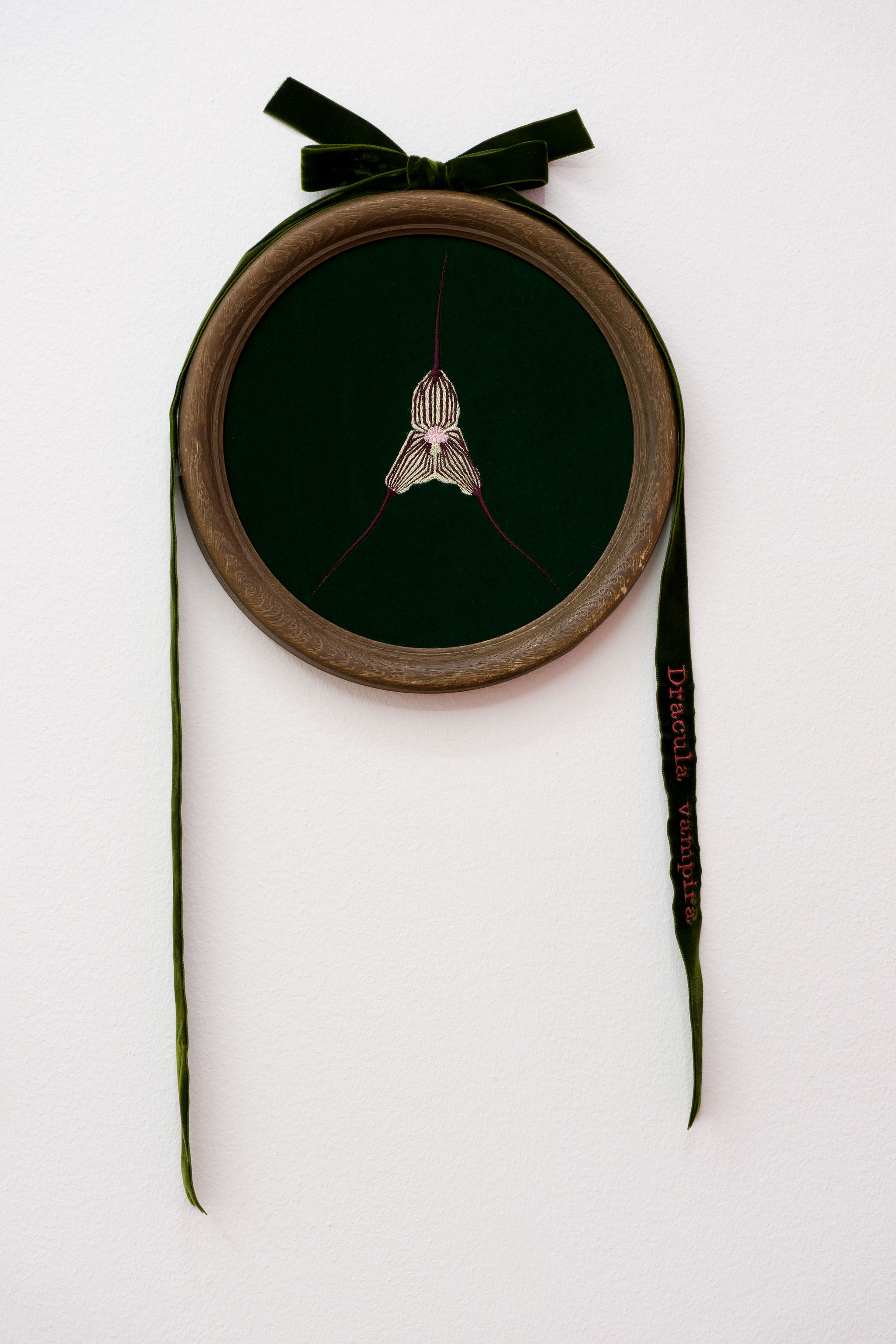 Artificially fossilized Ginkgo biloba leaves stand as relics of timeless places where past and present seem to fold into each other, disrupting the conventional notion of linear history. Seeing her textile embroidered series, depicting the endangered white lotus, Nymphaea lotus var. thermalis, or the mysterious rebel Dracula orchids and Stapelia gigantea, I felt that each piece narrated a tale of survival and adaptation. But when Thea told me about the plant Aerel dobrogean, a recently discovered plant in Dumbrăveni Reservation, something touched me, like a complete gesture toward a newly crafted feeling. Now I have to carry the story of a plant that was unknown to science until recently. How should I do this?